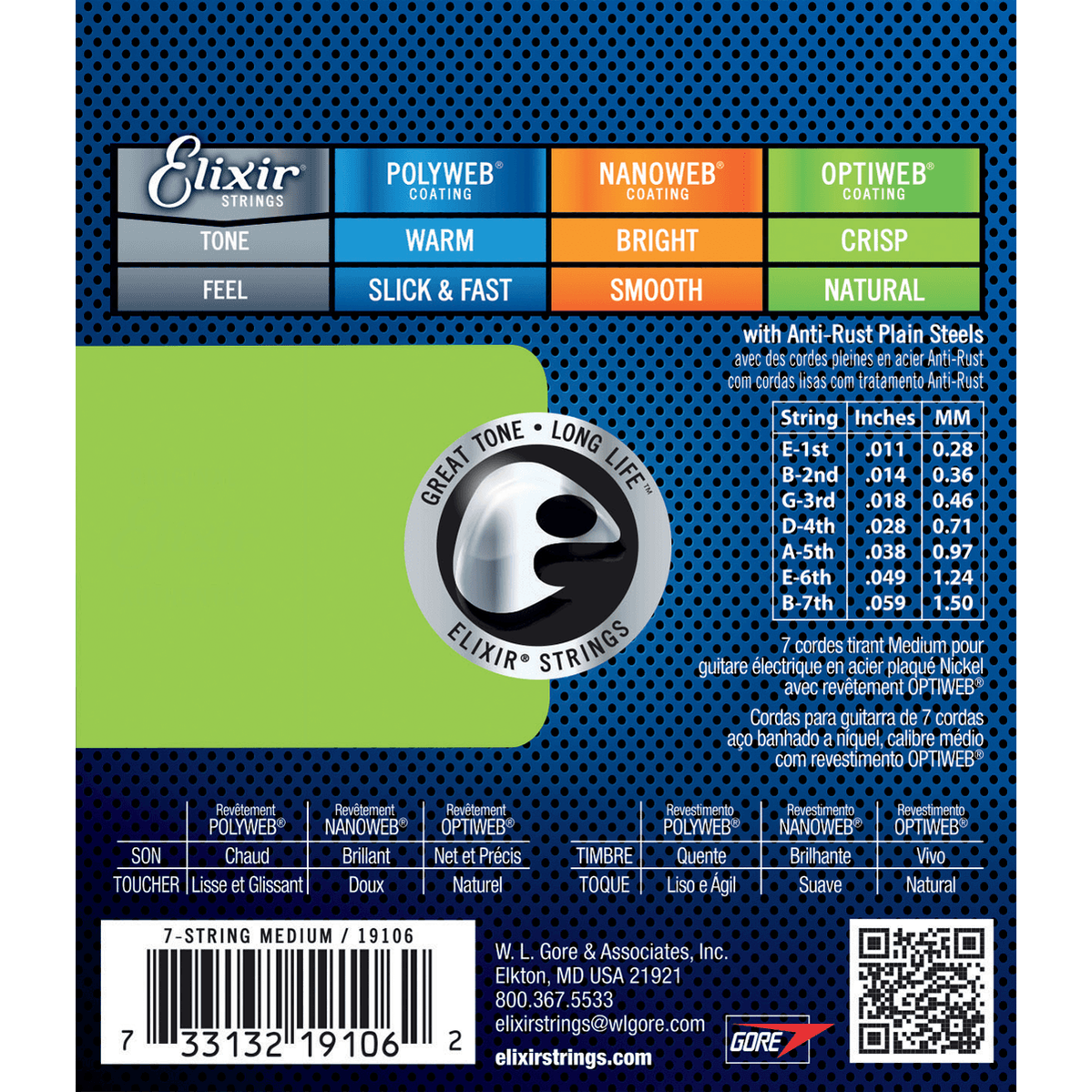 Elixir 19106 Optiweb Electric Guitar Strings Medium 7-String (011-059)