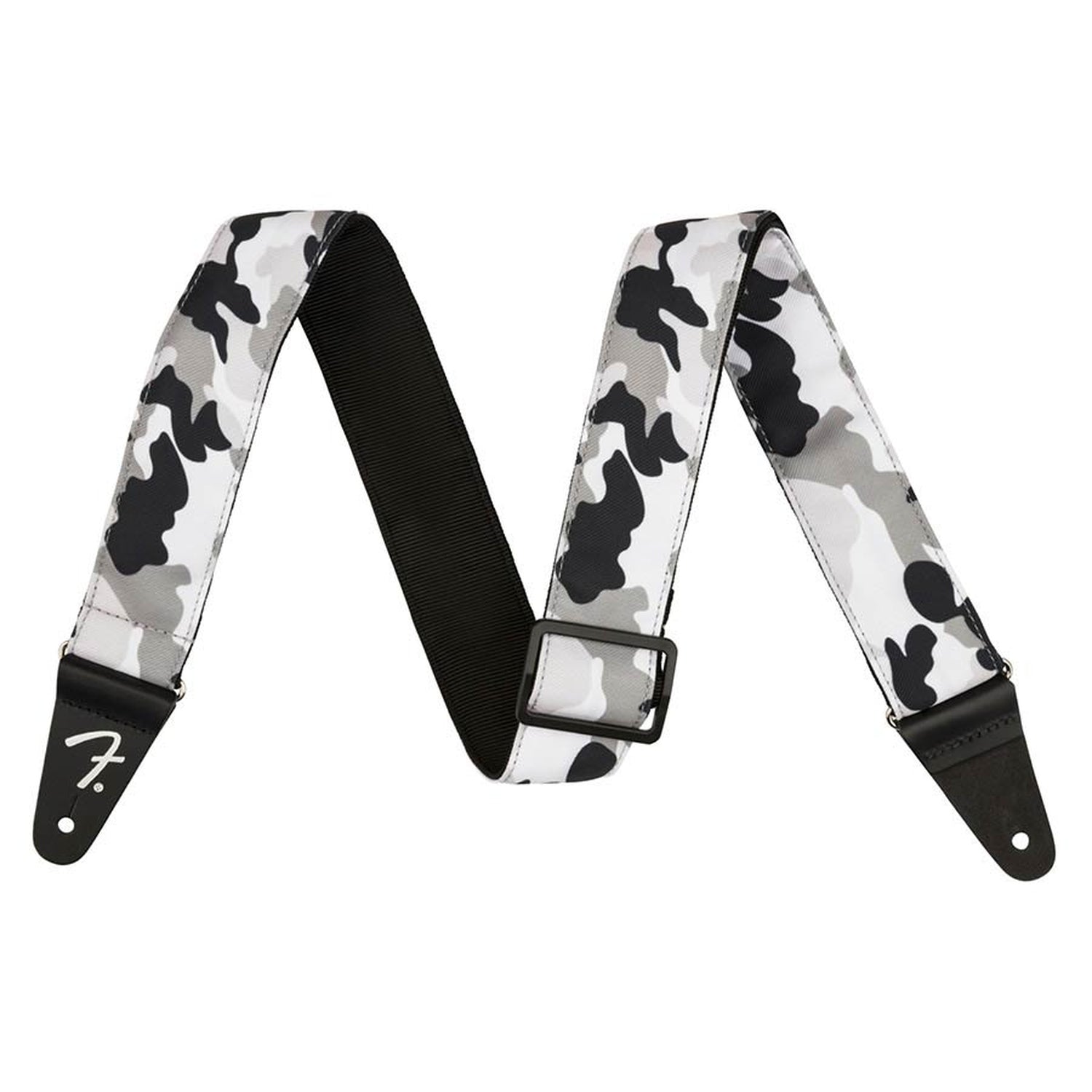 Fender 990638024 2" camo strap, winter Blend in to stand out with our canvas camouflage strap. Sporting a stylish camo design, this 2”-wide strap is backed by tubular nylon for durability and comfort. Adjustable from 34”-59” in length so it fits players of any stature, it's available in two popular camo pattern options, Woodland and Winter camo.