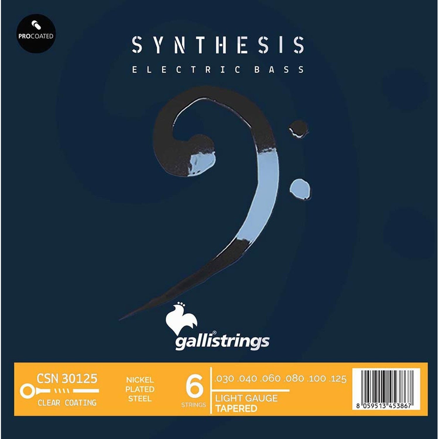 Galli CSN-30125 6-string set electric bass, coated nickel plated steel winding, light, 030-040-060-083-100-125
