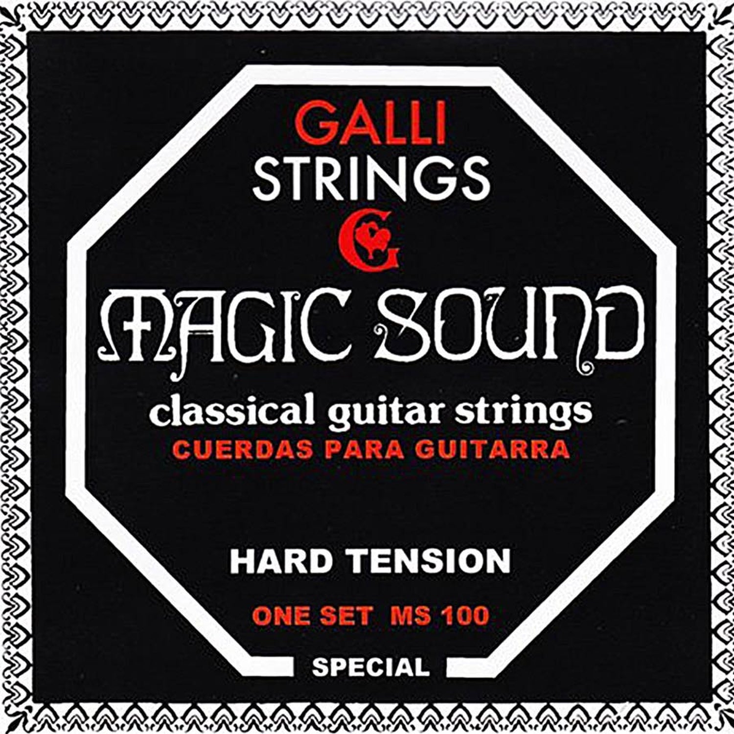 Galli MS-100 string set classic, hard tension, 029-032-040-030-038-045 Multi-wire nylon covered with silver plated for the low notes. Nylon for the trebles.