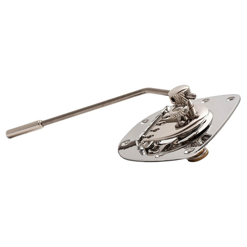 The Göldo Originals TDG1JM DG Tremolo Custom Vibrato System is an advanced upgrade for Jazzmaster and Jaguar guitars, finished in an elegant nickel. This vibrato system isn't a replica of the classic Fender design; it offers a modern reinterpretation with superior playability and improved tone transfer. Despite its innovative engineering, the system fits without modification—no drilling, routing, or additional holes required.