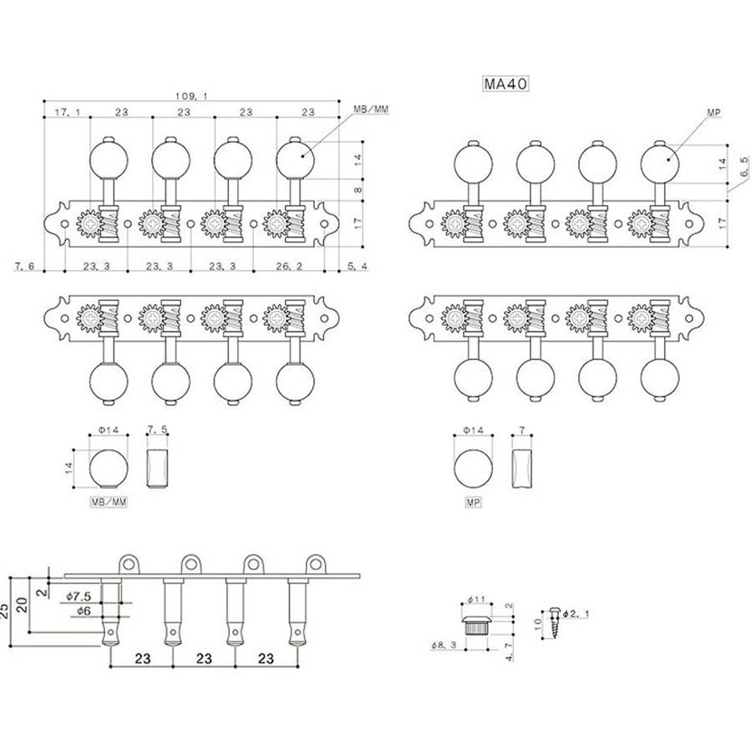 These machine heads offer a 1:14 gear ratio, ensuring smooth and accurate tuning, so you can always get the best possible tone from your mandolin. The black knob adds a modern twist to the classic design, perfect for musicians who value both style and quality.