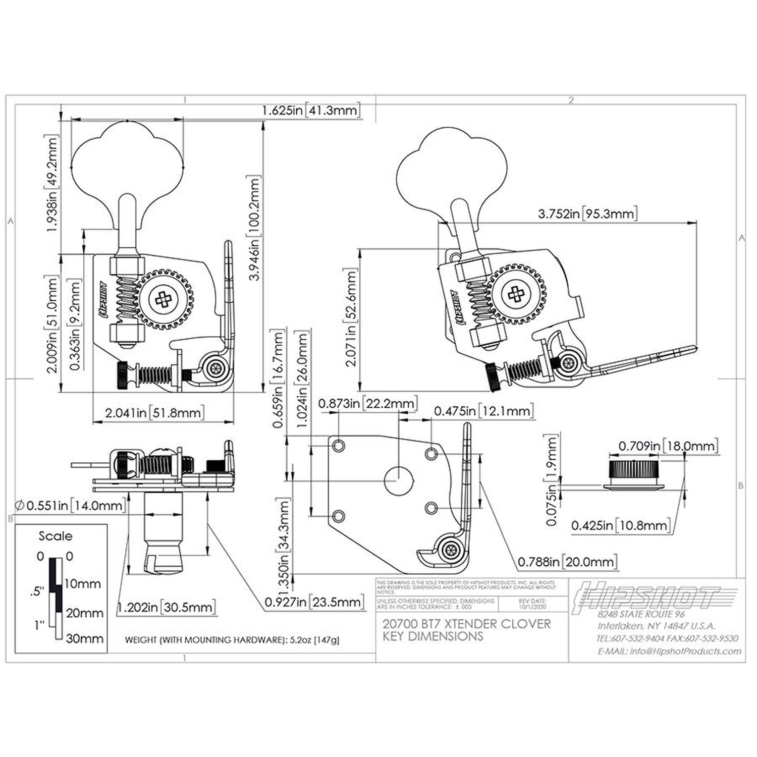 Hipshot HS0700N BT7 Bass Xtender, for F-style made in Mexico, clover key, nickel