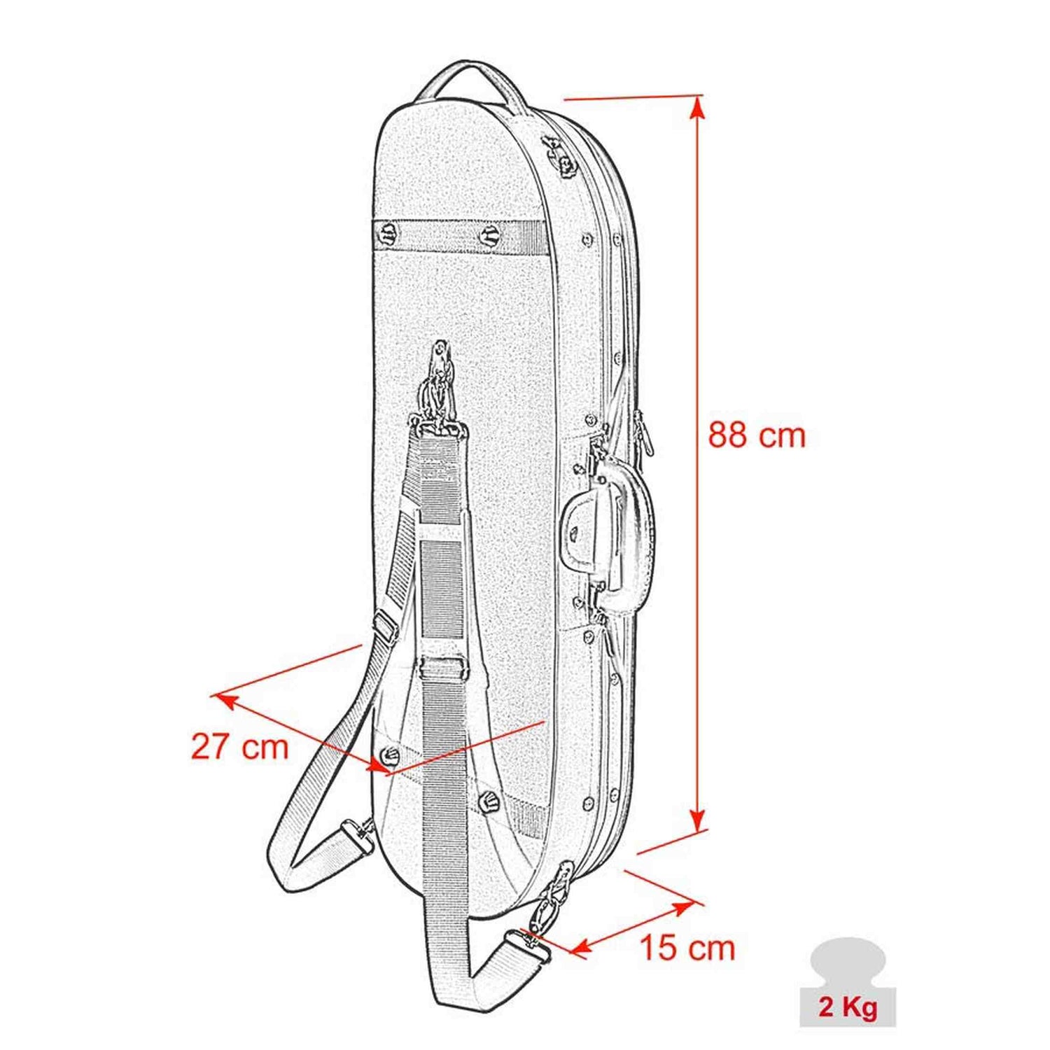 De binnenzijde is volledig gevoerd en afgewerkt met blauw suède. Je neemt twee strijkstokken mee en bergt accessoires op in de twee interne vakken. De snarenkoker en beschermdoek zorgen voor extra bescherming en overzicht. Met de twee rugriemen draag je de koffer comfortabel naar les en repetitie.
