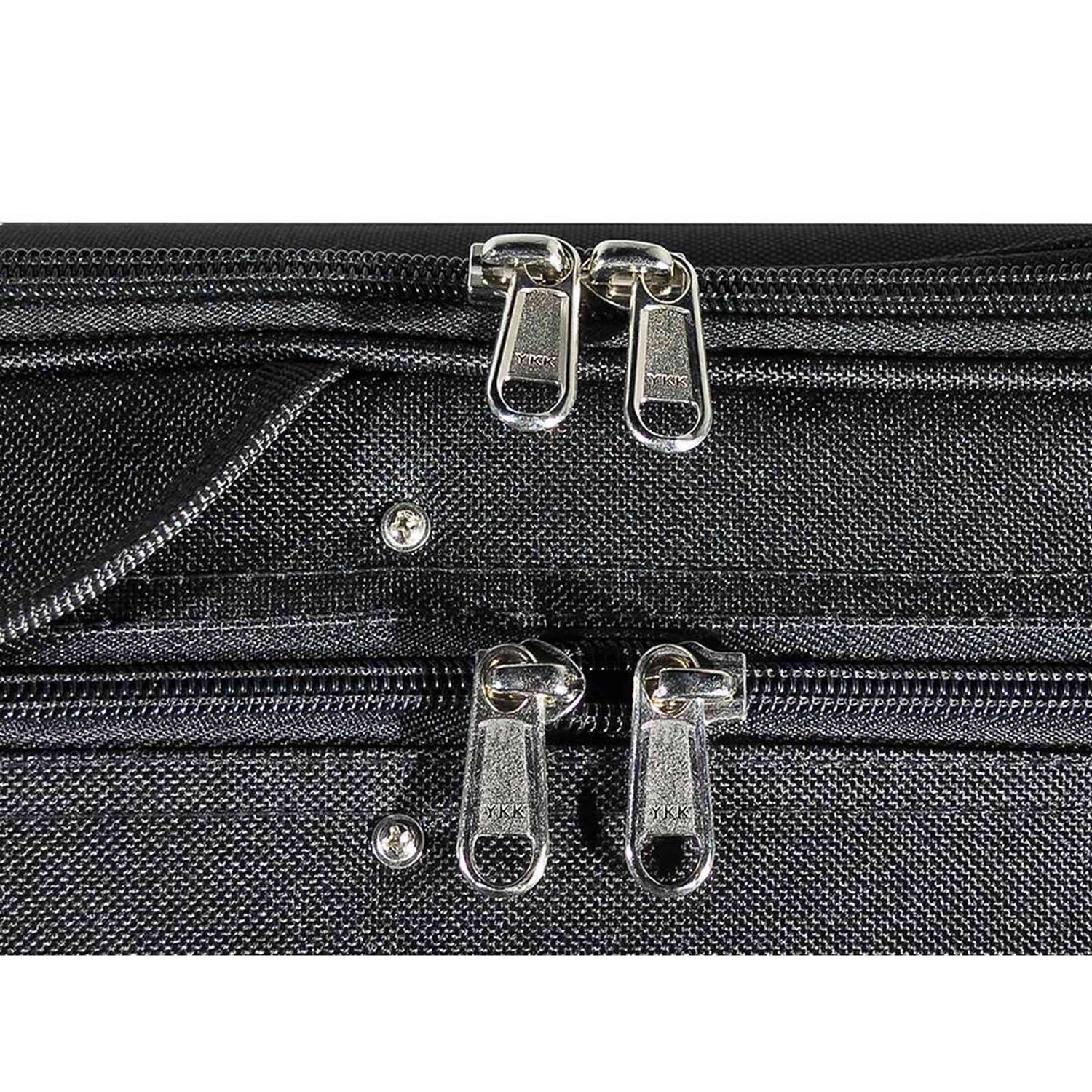 The interior is lined with black plush and conforms perfectly to the violin's shape. Two bows can be placed in the fixed holders. The wide accessory box provides organized storage for rosin and small accessories. The external music pocket offers space for sheet music. The YKK zipper operates smoothly and is durable for everyday use. Two shoulder straps allow you to carry the case comfortably on your back.