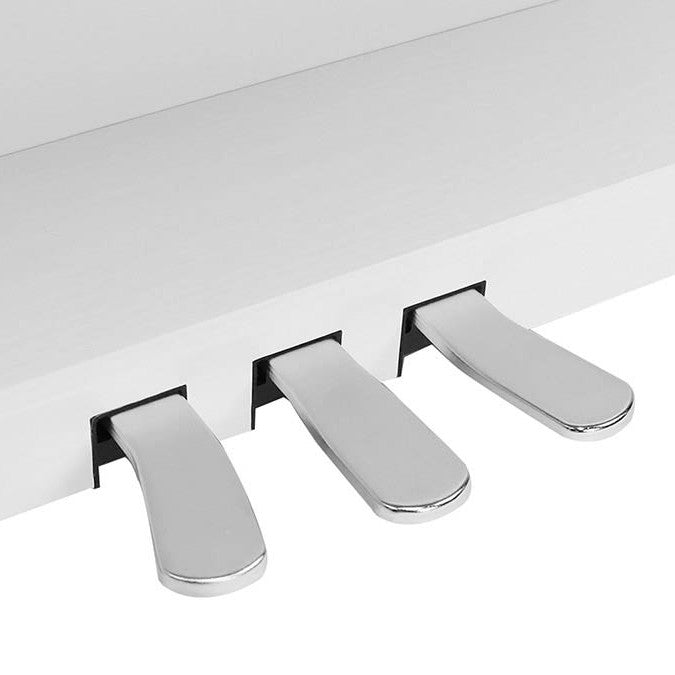 The Medeli DP650KW from the Forte Series is a digital home piano with a luxurious appearance thanks to its high-gloss white finish. Equipped with a full 88-key Grand Action 3-sensor Premium Wooden keyboard (G3PW), this piano offers a realistic playing experience that closely resembles the feel of an acoustic grand piano. The wooden, weighted keys respond exceptionally sensitively to dynamics and touch, bringing every nuance of your playing to life. Its modern and stylish design makes the DP650KW a striking addition to any living or music space.