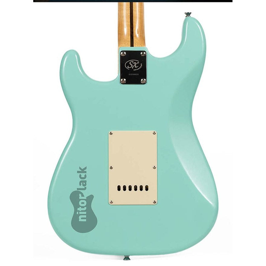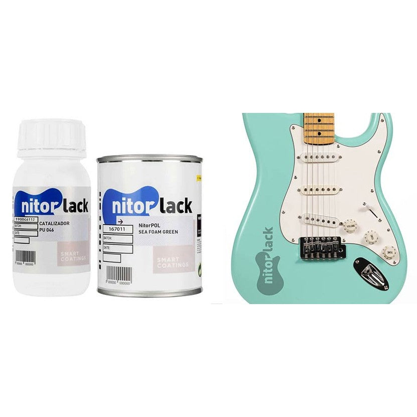 NitorLACK N167011108 is a two-coat polyurethane lacquer in the iconic color Seafoam Green , originally a 1956 Buick automobile color ( Duco 2253 ) and later included in the Fender Custom Color Program between 1960 and 1969. This vibrant green shade is beloved by enthusiasts of vintage Stratocaster and Telecaster guitars, and is more intense than Surf Green – perfect for a striking retro look.