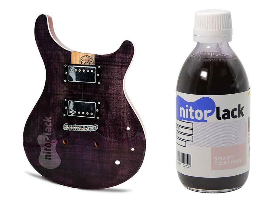 The NitorLACK N410405112 NitorAQUA Purple is a high-quality, water-based stain specifically designed for staining wooden musical instruments such as guitars and basses. This striking purple hue provides a unique, modern look while still allowing the wood grain to shine through. Its translucent properties preserve the natural beauty of the wood, resulting in a professional and elegant finish.