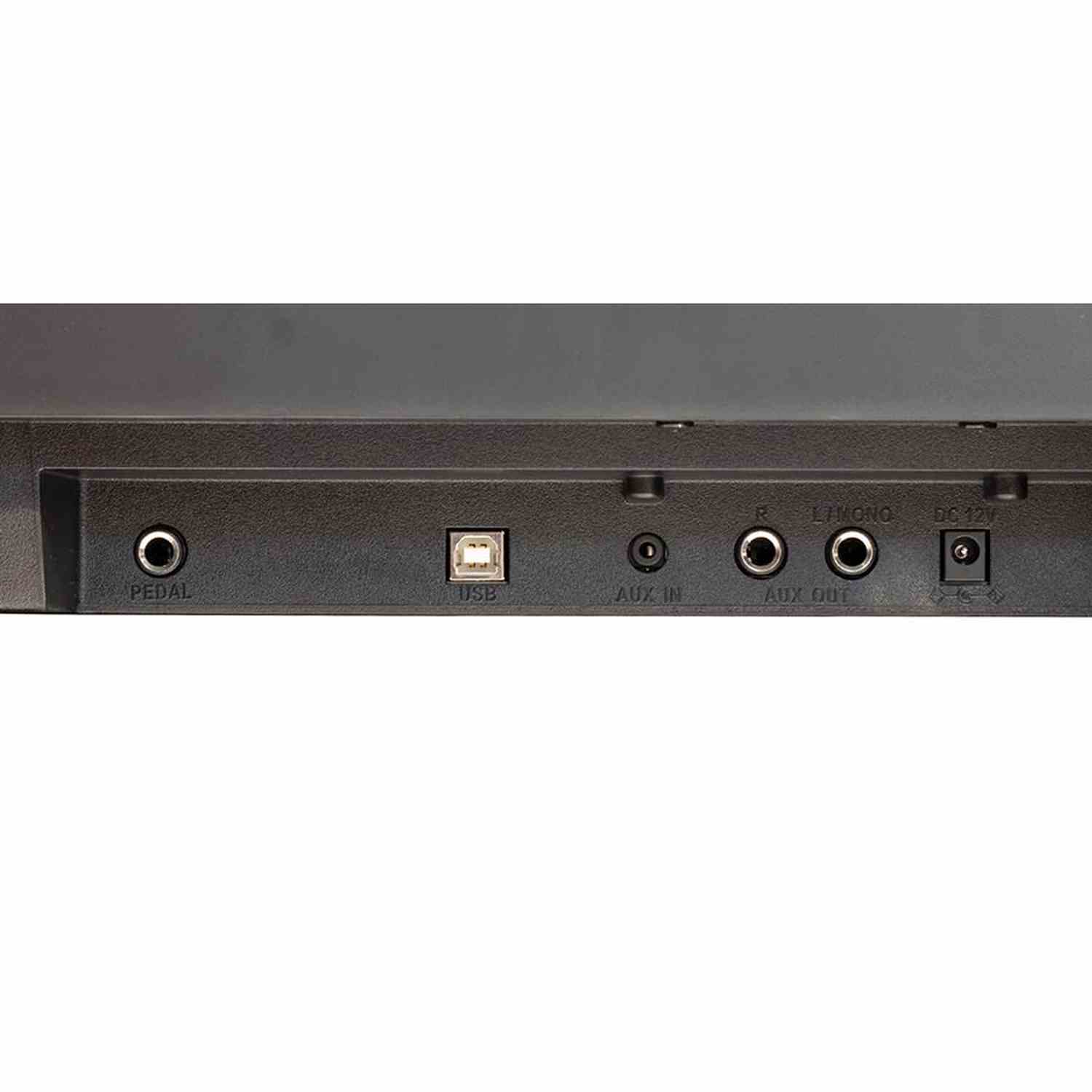 - USB MIDI, AUX IN/OUT, headphone jack (2x), pedal jack