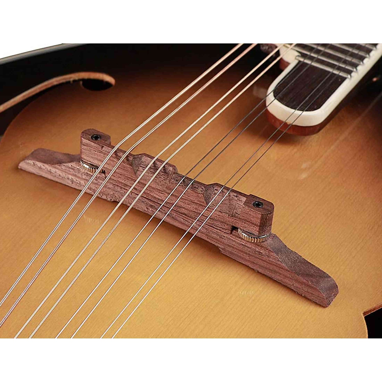 De mahonie hals met toets van technisch hout en een walnoothouten brug biedt een comfortabele speelervaring. Met een actieve tweeweg truss rod is de hals eenvoudig naar wens af te stellen. De ivoroïde binding en hoogwaardige Koreaanse open-geared stemmechanieken zorgen voor betrouwbaarheid en precisie. De RMF-60-VS is een betaalbare, goed gebouwde mandoline waarmee elke starter direct muzikaal uit de voeten kan.