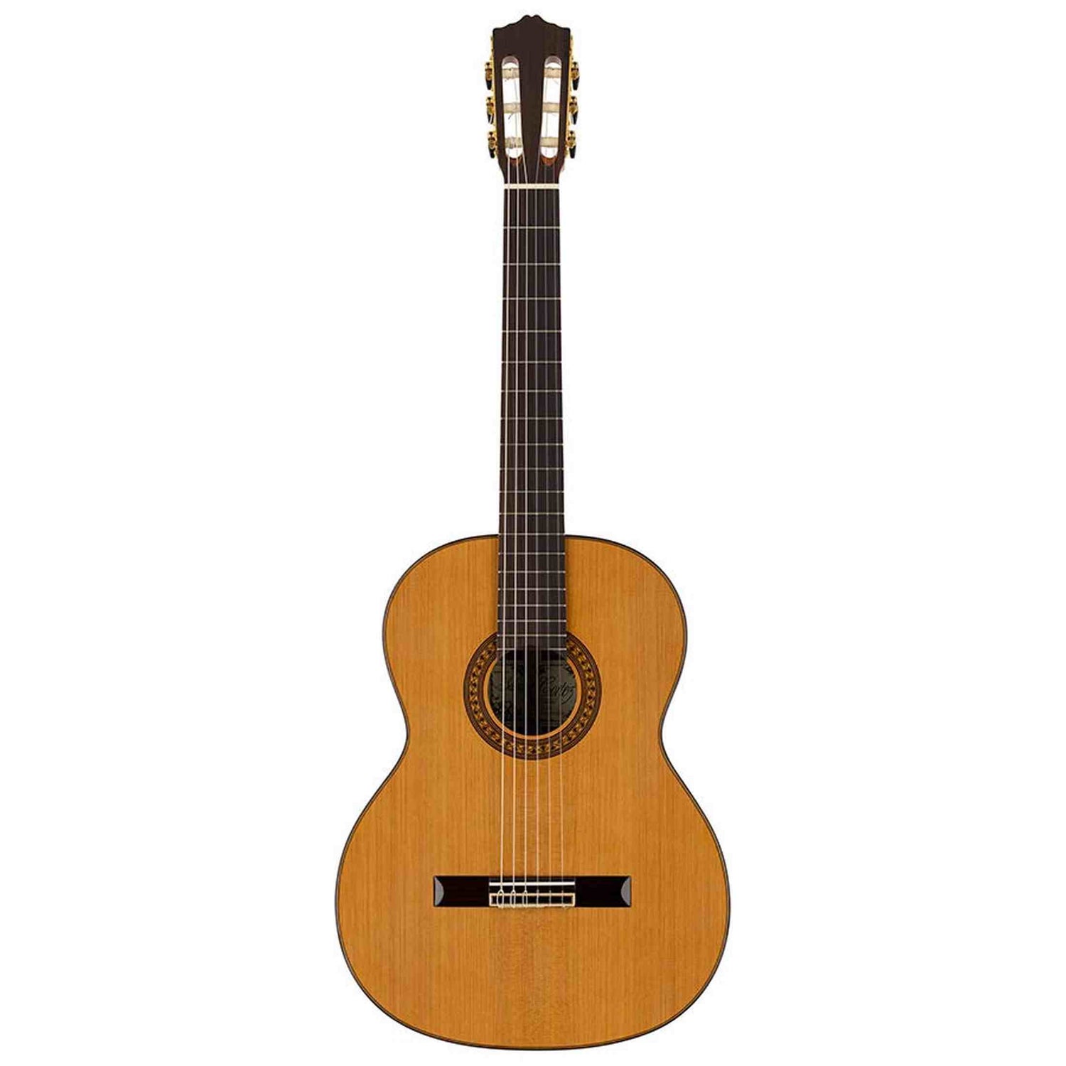 The Salvador Cortez CC-60 is a popular classical guitar from the Solid Top Concert Series. Featuring a solid Canadian cedar top and Indian rosewood back and sides, this model offers a full, warm tone with bright overtones. The response is direct, and the balance of power and detail makes this guitar suitable for both beginners and advanced players. The rosewood enhances the sonorous character, while the cedar adds lightness and nuance to the sound.
