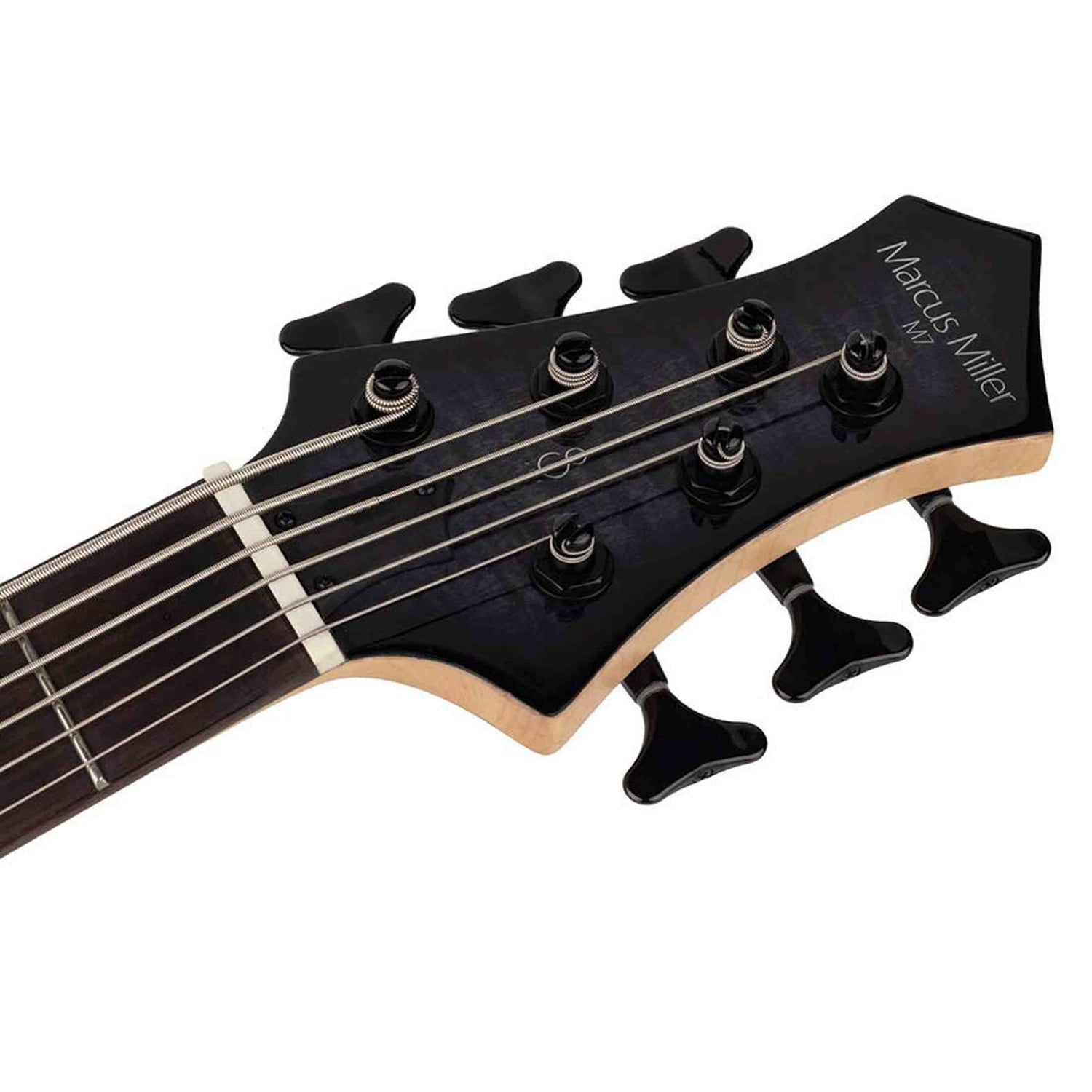 Sire M7+ A6/TBK Marcus Miller 6-snarige basgitaar, swamp ash met flame maple top, 35 inch, Heritage-3 preamp, Transparent Black