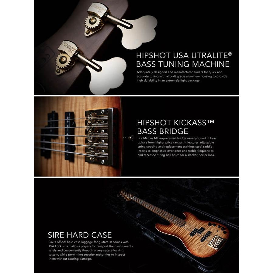 The Sire P10 DX4/NT Marcus Miller 4-String Active Bass Natural is the flagship model in Sire's P-Series, featuring a luxurious combination of a swamp ash body and a solid flamed maple top. This high-end PJ-style bass is designed for the professional bassist who wants to get the most out of their instrument. Thanks to the roasted flame maple neck and fingerboard with an EDGELESS™ finish, the bass feels exceptionally smooth. The P10 DX comes in an official Sire hard case for maximum protection.