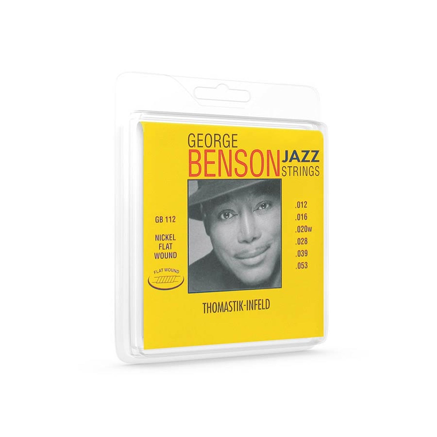 Thomastik Infeld THGB-112 electric string set, nickel flatwound 012-016-020-028-039-053 The dynamics of GEORGE BENSON JAZZ strings by THOMASTIK-INFELD were designed-in from the beginning. Like true intonation. Excellent sustain. Superior durability. And of course, a feel you simply have to experience. Just ask George. They're designed to his specs.