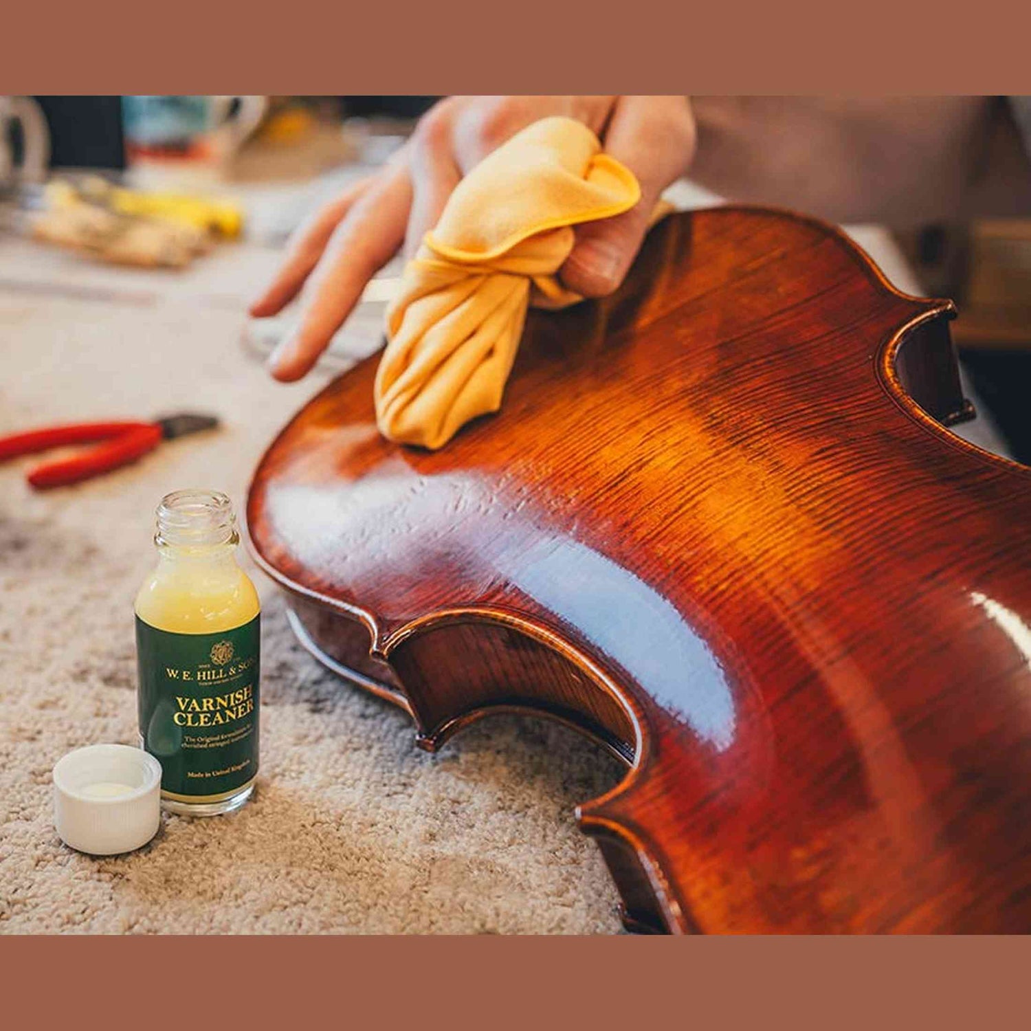 De W.E. Hill & Sons HCL-1785 varnish cleaner is een speciaal samengestelde vloeistof voor het reinigen en herstellen van traditionele vernissen op strijkinstrumenten. Deze milde formule verwijdert vuil en oppervlakkige aanslag zonder de lak aan te tasten, en helpt om de originele glans van het instrument te behouden. Ideaal voor gebruik op violen, altviolen, cello’s en contrabassen.